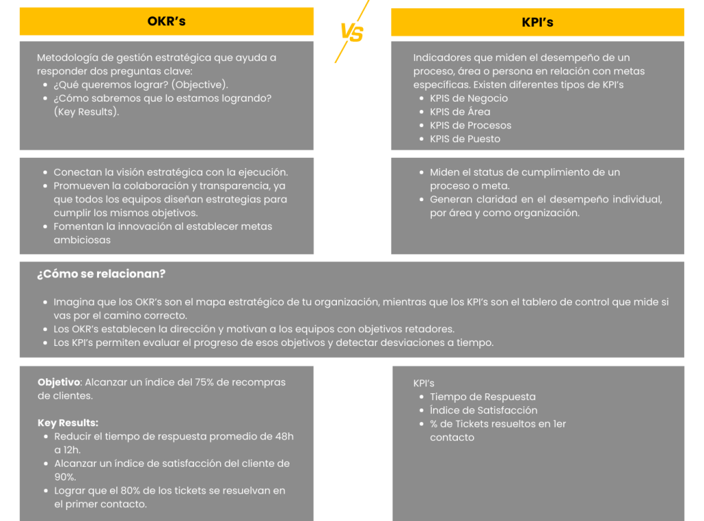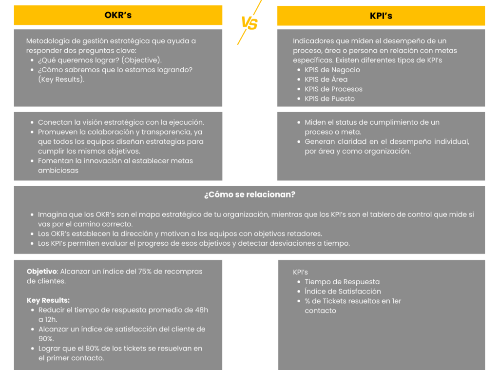 Aunque ambos conceptos están relacionados con la gestión del desempeño, no son lo mismo. En realidad, se complementan para formar un sistema integral que conecta la estrategia con la ejecución diaria.