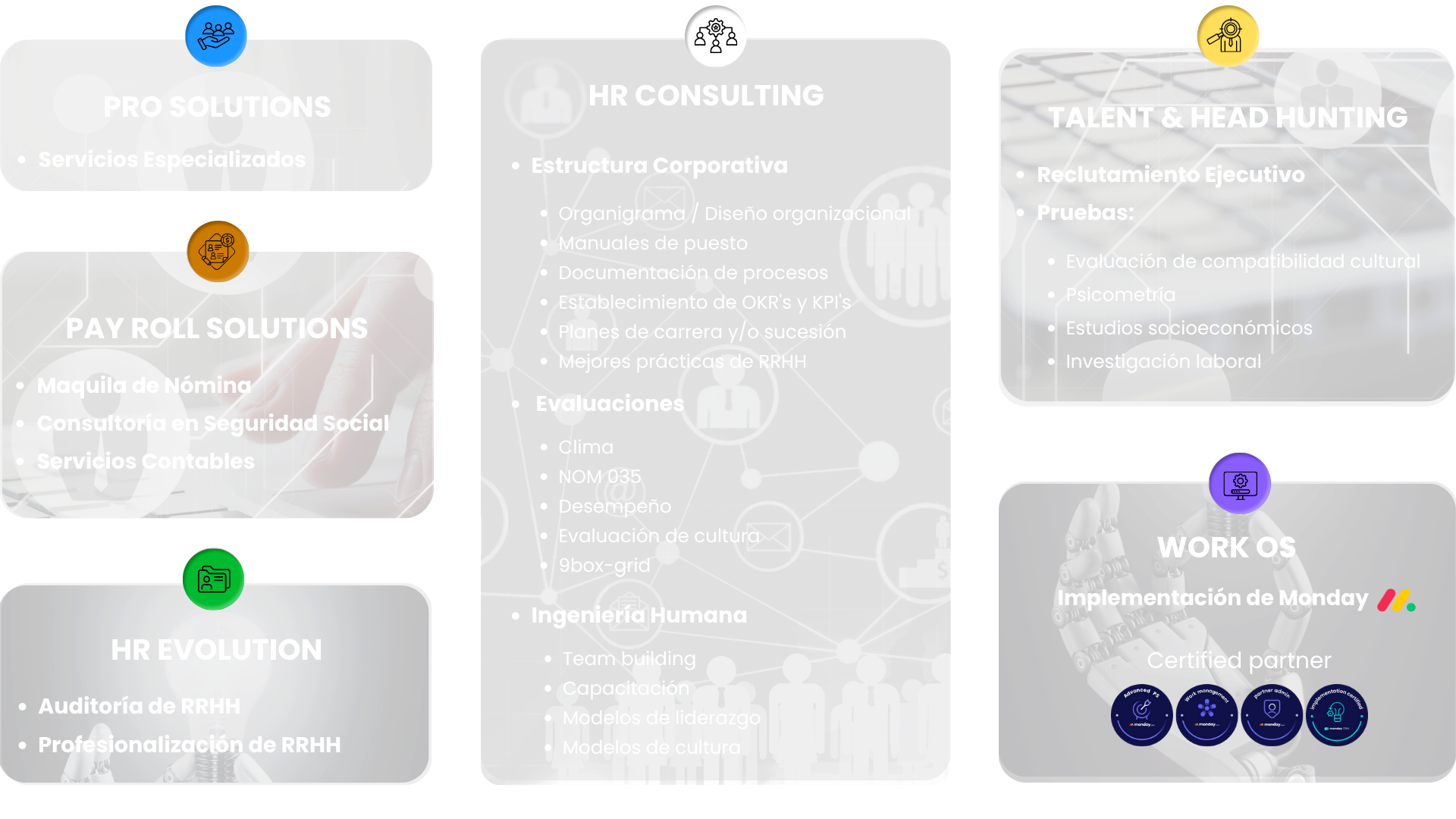 Diseñamos soluciones a la medida y concentramos la mejor alternativa para cubrir cada necesidad o proyecto, generando empresas de clase mundial que conviertan sus planes, procesos y acciones en utilidades crecientes para el negocio y sus colaboradores.